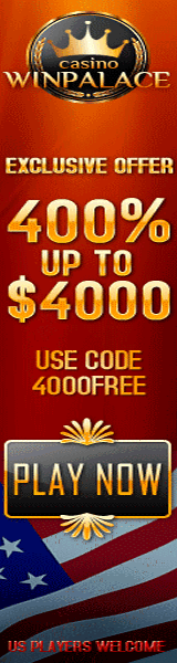 Exclusive 400% matching deposit bonus good to $4,000 for slots on first deposit: 4000FREE | WinPalace Casino Review | |